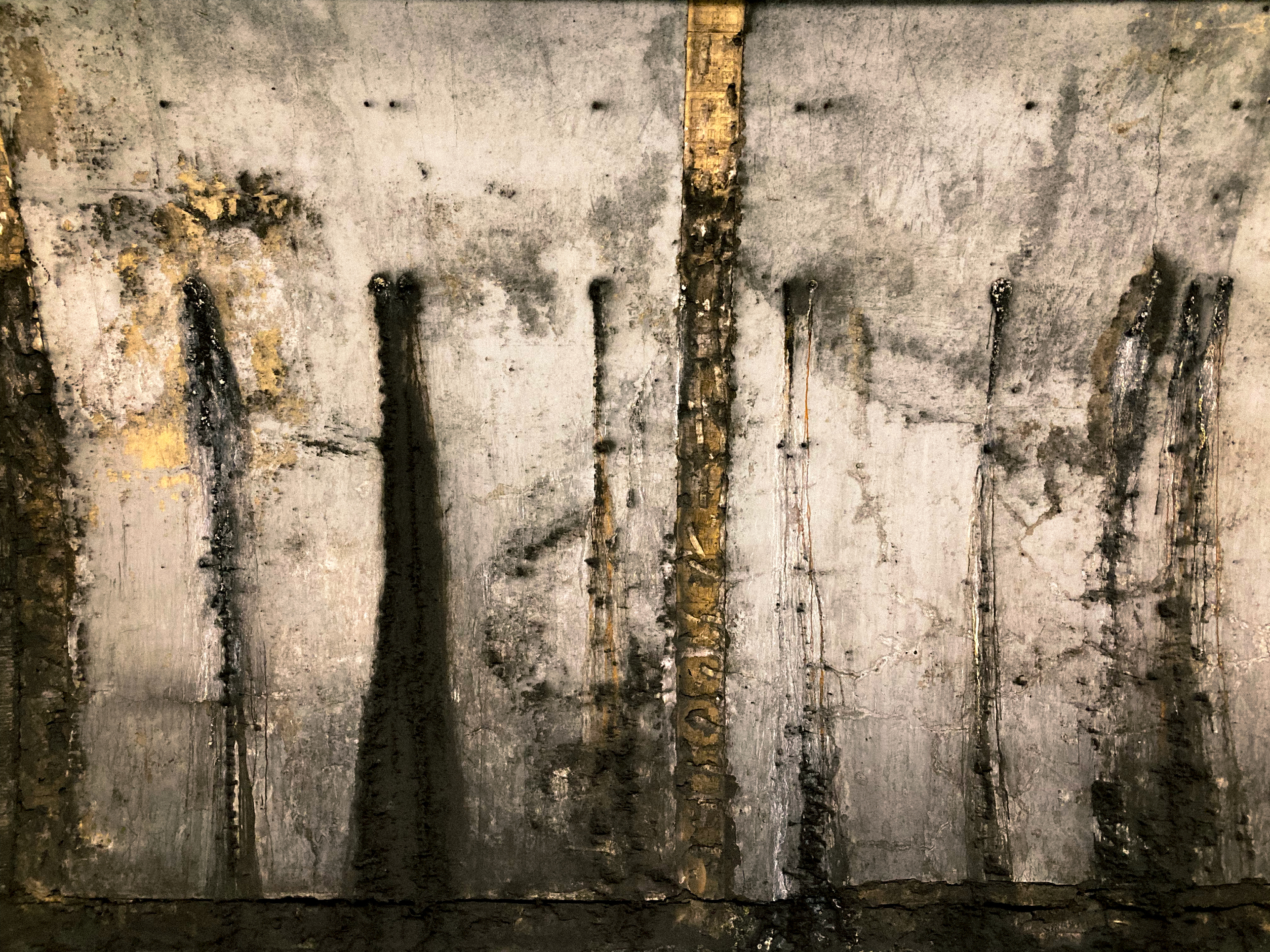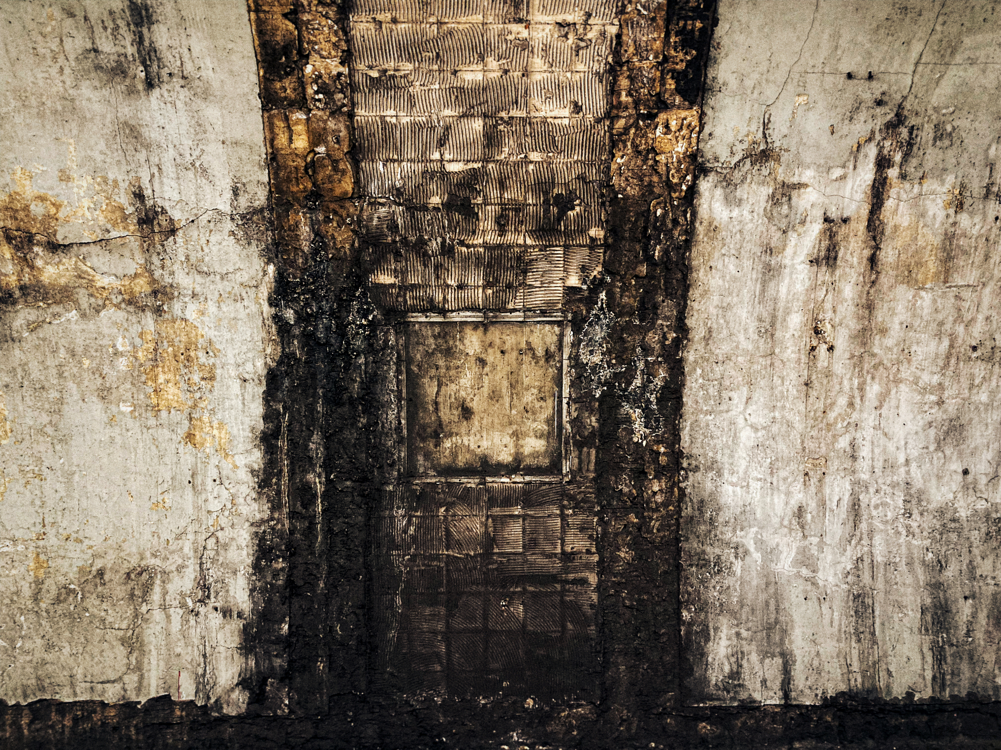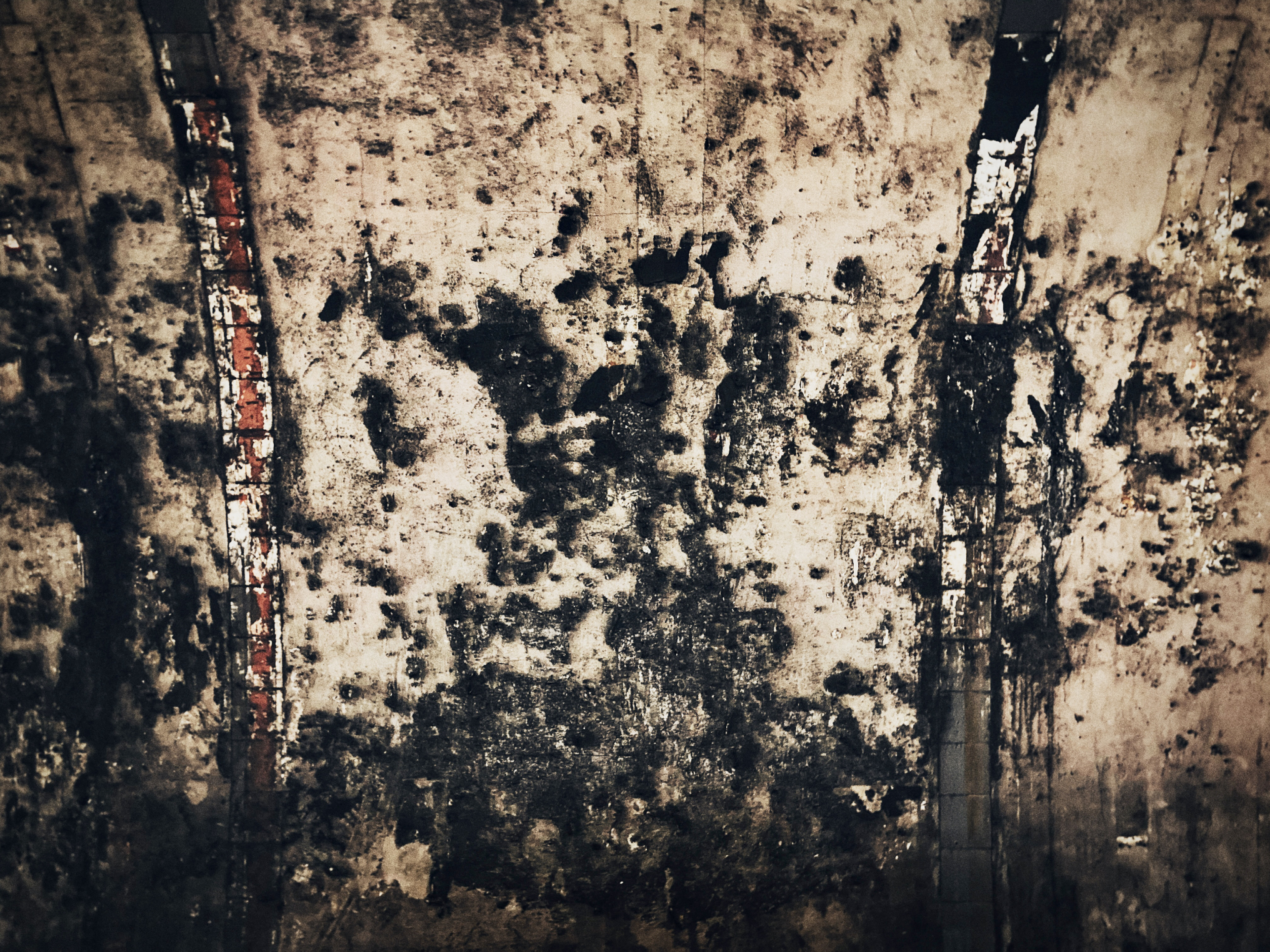 A moody, atmospheric image with layered textures and subtle lighting, suggesting a subterranean environment