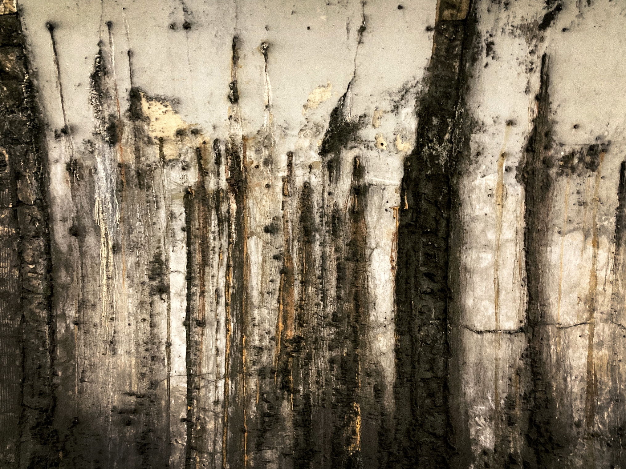 A moody, atmospheric image with layered textures and subtle lighting, suggesting a subterranean environment